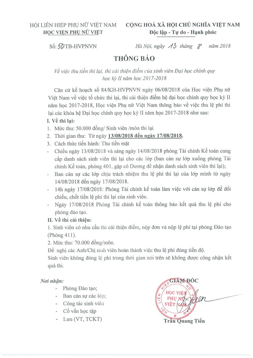 Thông báo thu tiền thi lại, thi cải thiện điểm, học phí của sinh viên đại học chính quy HKII