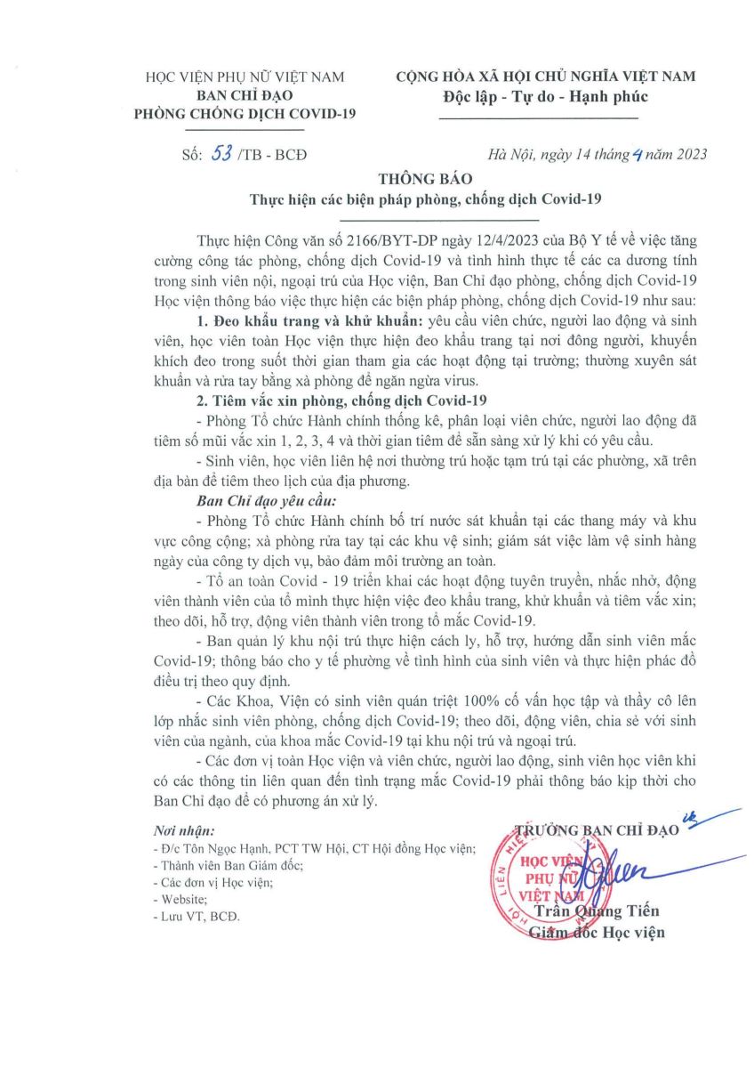 Tin tứcThông báo thực hiện các biện pháp phòng, chống dịch Covid 19 Posted on Tháng Tư 15, 2023 by admin(full) 15 Th4 admin(full) Thông báo tuyển sinh liên thông đại học ngành Công tác xã hội Học viện Phụ nữ Việt Nam, môi trường giáo dục toàn diện, chất lượng và bình đẳng