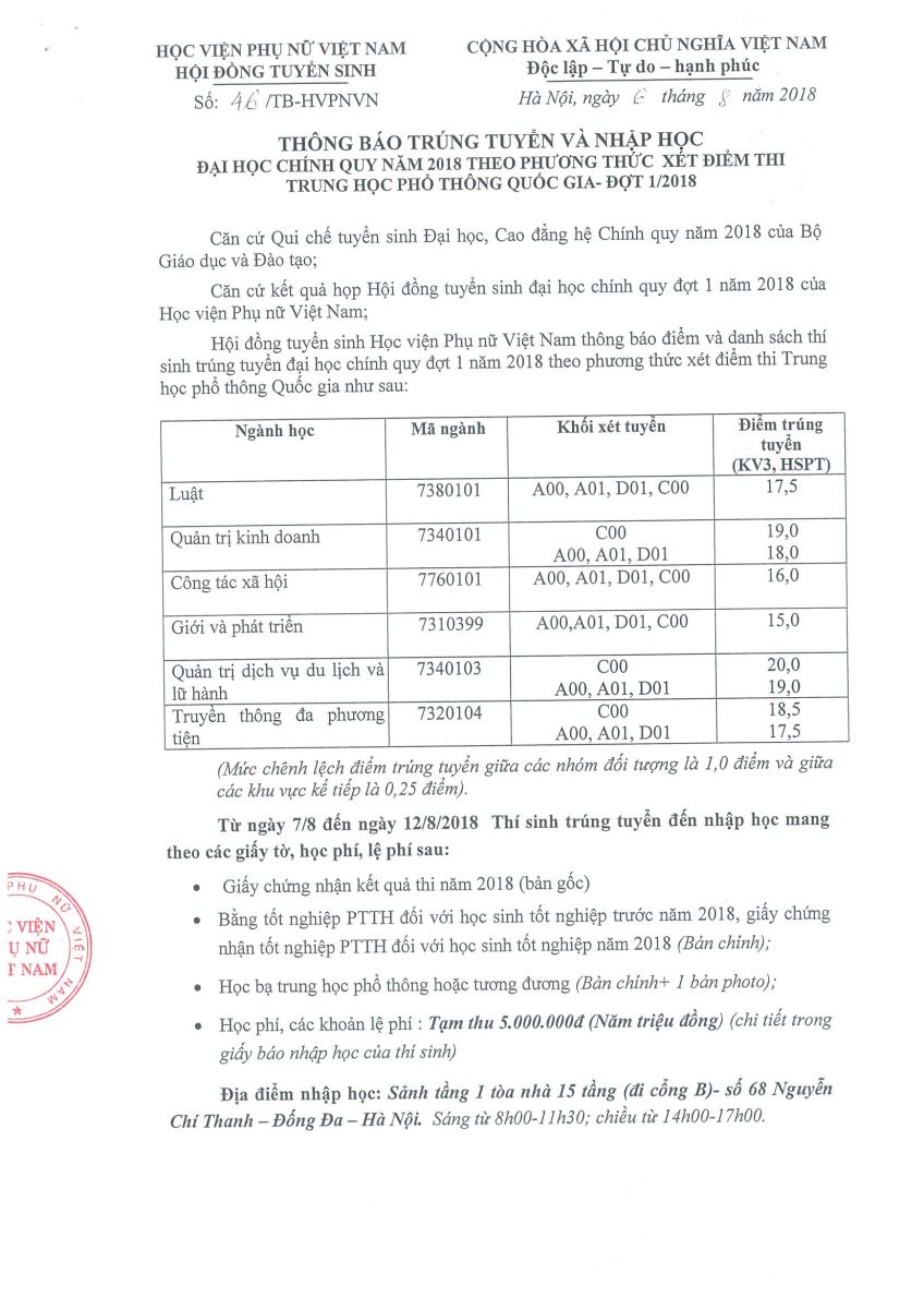 THÔNG BÁO TRÚNG TUYỂN & NHẬP HỌC ĐẠI HỌC NĂM 2018