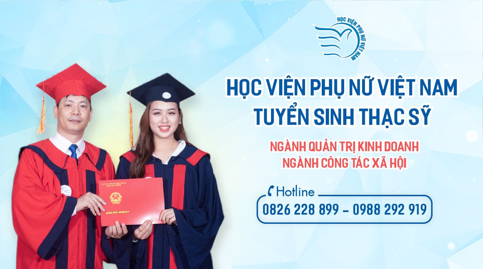 Địa điểm nhận hồ sơ: Phòng Đào tạo Học viện Phụ nữ Việt Nam (Phòng 312A tòa nhà 15 tầng) – số 68 đường Nguyễn Chí Thanh- Quận Đống Đa- Hà Nội.