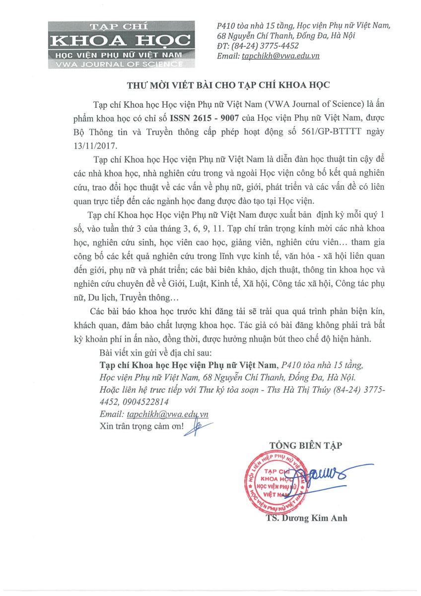 Tin tứcThư mời viết bài cộng tác Tạp chí Khoa học Học viện Phụ nữ Việt Nam Posted on Tháng Năm 11, 2018 by admin(full) 11 Th5 admin(full) Kết quả đánh giá rèn luyện sinh viên khóa II và bổ sung kết quả rèn luyện sinh viên khóa V THÔNG BÁO TUYỂN DỤNG NHÂN SỰ 2018