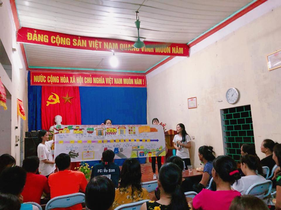 Sau khi nghe báo cáo tại xã, sinh viên chia thành 5 đoàn nhỏ để thực hành tại các thôn. Tại các thôn, các đoàn thực hành nhận được sự đón tiếp nhiệt tình, chu đáo của bà con trong thôn, điều đó được thể hiện bằng việc sắp xếp chỗ ở, ăn cùng với người dân và tại nhà văn hóa của thôn. Người dân hỗ trợ cho các đoàn sinh viên ổn định nơi ở, ăn uống và sinh hoạt. Sinh viên bắt đầu các hoạt động thực hành như khảo sát cộng đồng, vẽ sơ đồ cộng đồng, sơ đồ mặt cắt và tiến hành khảo sát, họp dân để thực hiện dự án cộng đồng.