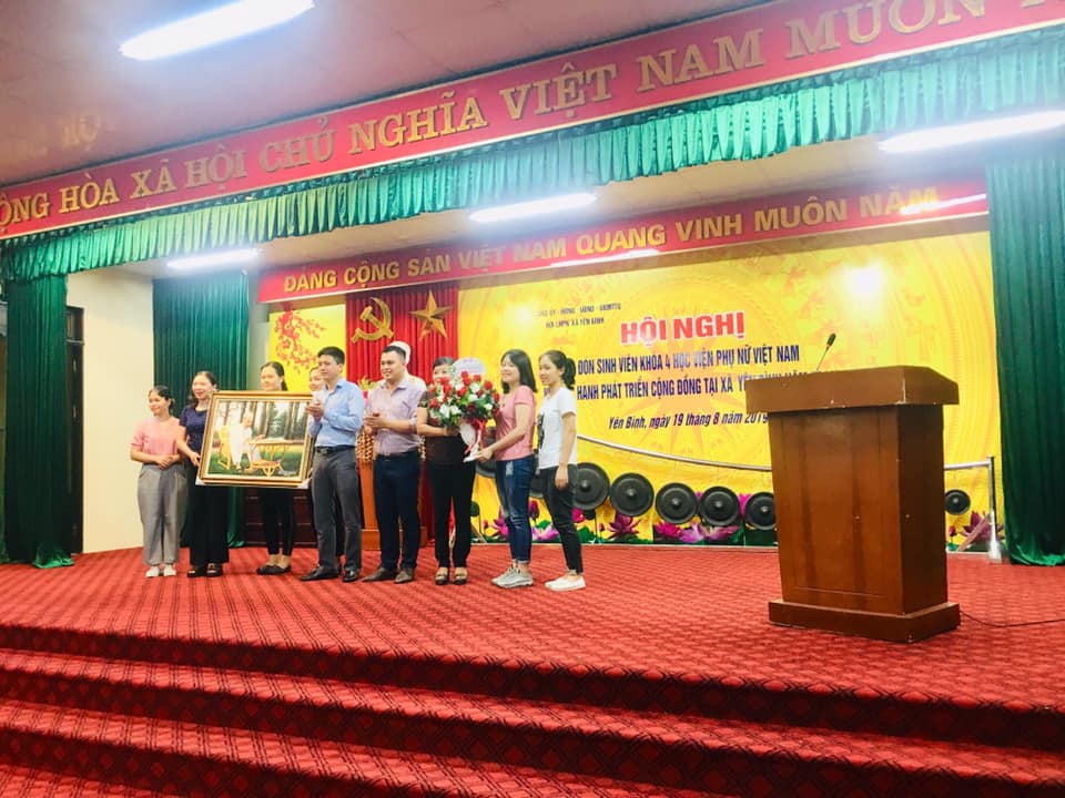 Giảng viên và sinh viên chụp ảnh kỷ niệm cùng lãnh đạo địa phương