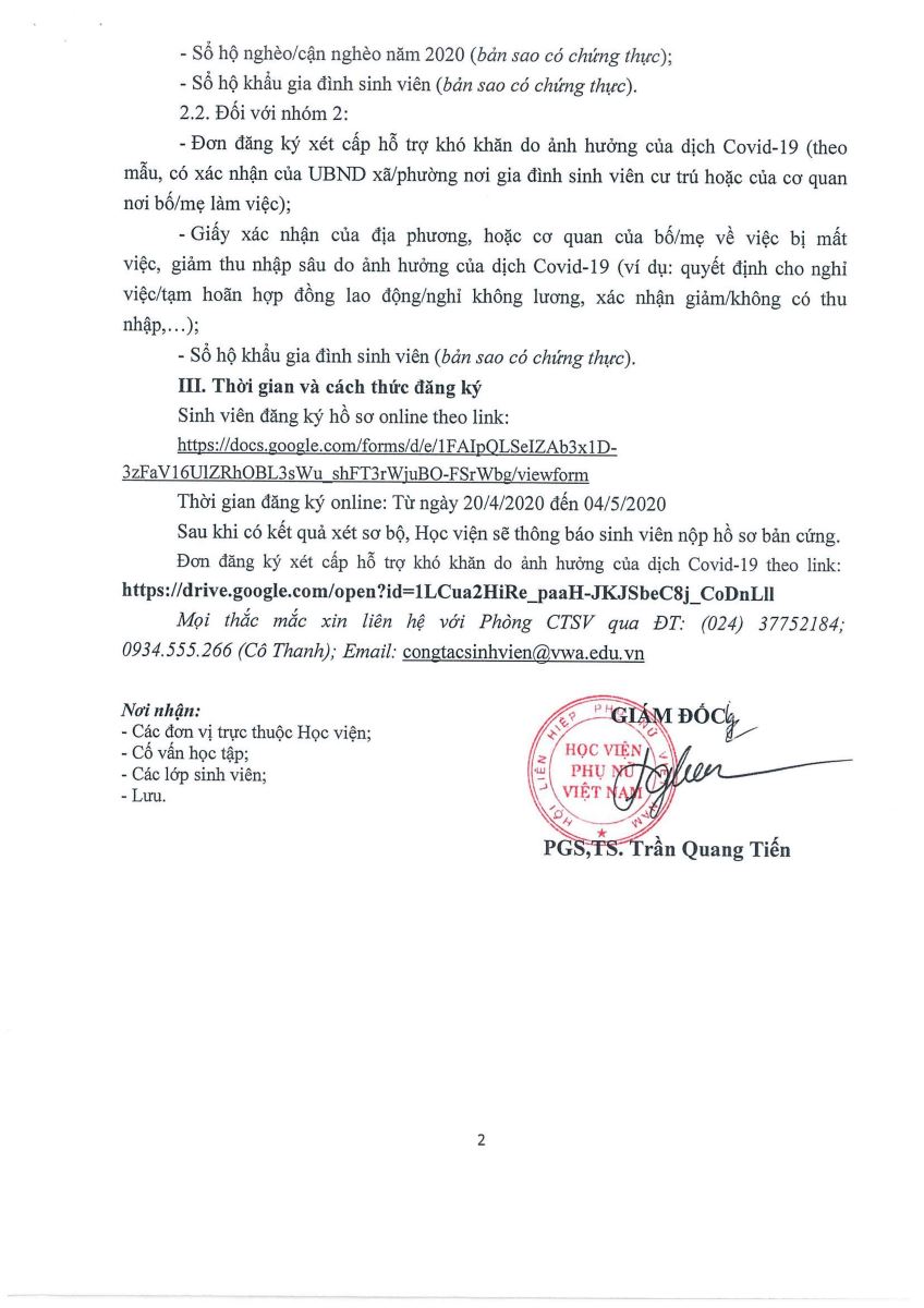 Xét Học bổng cho sinh viên khó khăn do ảnh hưởng của dịch Covid-19