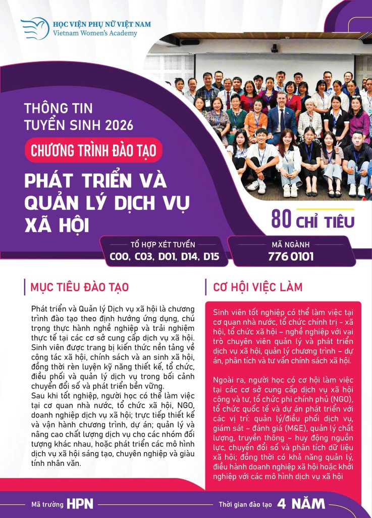 – Tên chương trình đào tạo: Phát triển và Quản lý dịch vụ xã hội