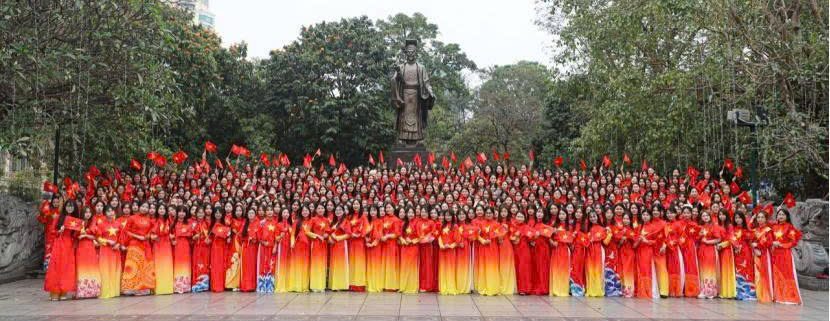 Thành viên CLB tham gia xếp hình bản đồ Việt Nam hưởng ứng Tuần lễ Áo dài Việt Nam