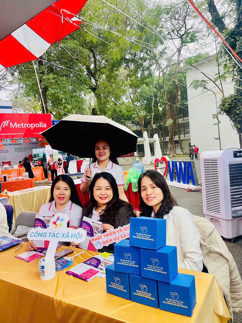 Tại gian hàng của Học viện Phụ nữ Việt Nam, đội ngũ giảng viên Khoa Công tác xã hội đã trực tiếp tư vấn, cung cấp thông tin về các ngành đào tạo của Học viện nói chung và ngành Công tác xã hội nói riêng. Các thầy cô giới thiệu chi tiết về chương trình đào tạo, phương pháp giảng dạy theo định hướng ứng dụng, gắn kết chặt chẽ giữa lý luận và thực hành; các hoạt động thực tập, kiến tập tại cơ sở; cũng như cơ hội việc làm đa dạng sau khi tốt nghiệp. Đồng thời, các hoạt động nghiên cứu khoa học sinh viên, câu lạc bộ và các chương trình hợp tác với tổ chức trong nước, quốc tế cũng được giới thiệu nhằm giúp học sinh hiểu rõ hơn về môi trường học tập năng động của sinh viên Khoa Công tác xã hội.
